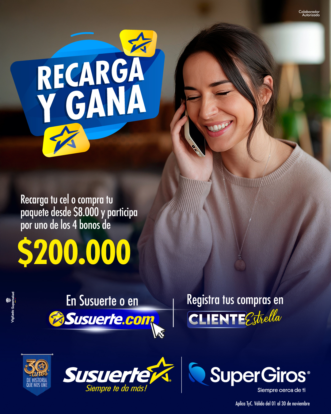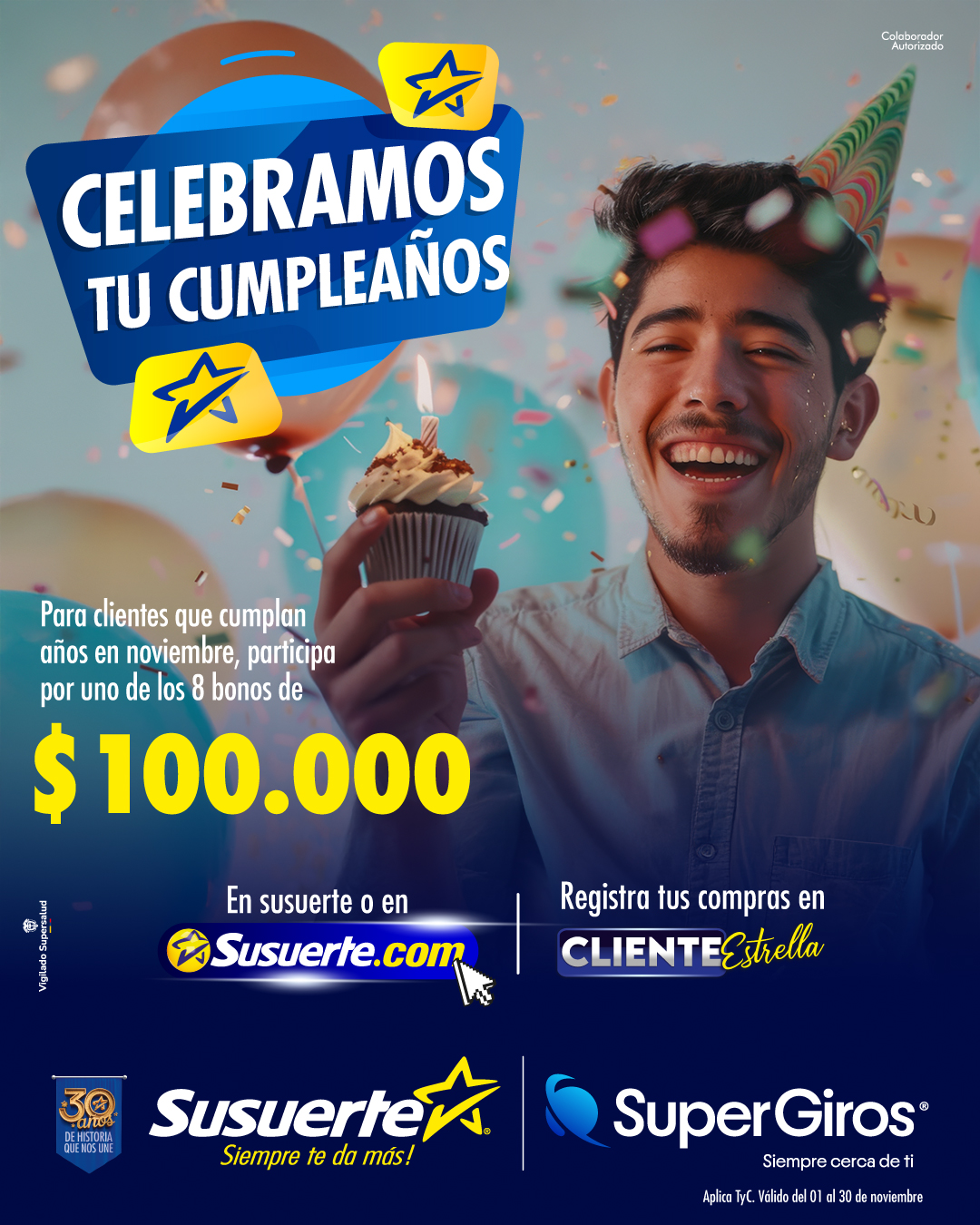 DESCUBRE TODAS LAS PROMOCIONES DE CLIENTE ESTRELLA Y PARTICIPA PAGA TU FACTURA VIGENCIA: Del 01 al 30 de noviembre del 2025 CELEBRAMOS TU CUMPLEAÑOS VIGENCIA: Del 01 al 30 de noviembre del 2025 COMPRA RÁPIDO, PAGA FÁCIL, Y GANA VIGENCIA: Del 01 al 30 de noviembre del 2025 RECARGA Y GANA VIGENCIA: Del 01 al 30 de noviembre del 2025 REGÍSTRATE Y GANA VIGENCIA: Del 01 al 30 de noviembre del 2025 EMPAQUETADO MILLONARIO VIGENCIA: Del 01 al 30 de noviembre del 2025 REGÍSTRATE Y PAGA FÁCIL EN SUSUERTE.COM VIGENCIA: Del 01 al 30 de noviembre del 2025 PLAN COSECHA VIGENCIA: Del 01 al 30 de noviembre del 2025 MOTO NAVIDAD CON BETPLAY VIGENCIA: Del 01 al 31 de diciembre del 2025 GANA MÁS 50% VIGENCIA: Del 01 al 30 de noviembre del 2025 SU ACUMULADO ENCIMA DE LOCURA VIGENCIA: Del 01 al 31 de agosto del 2024