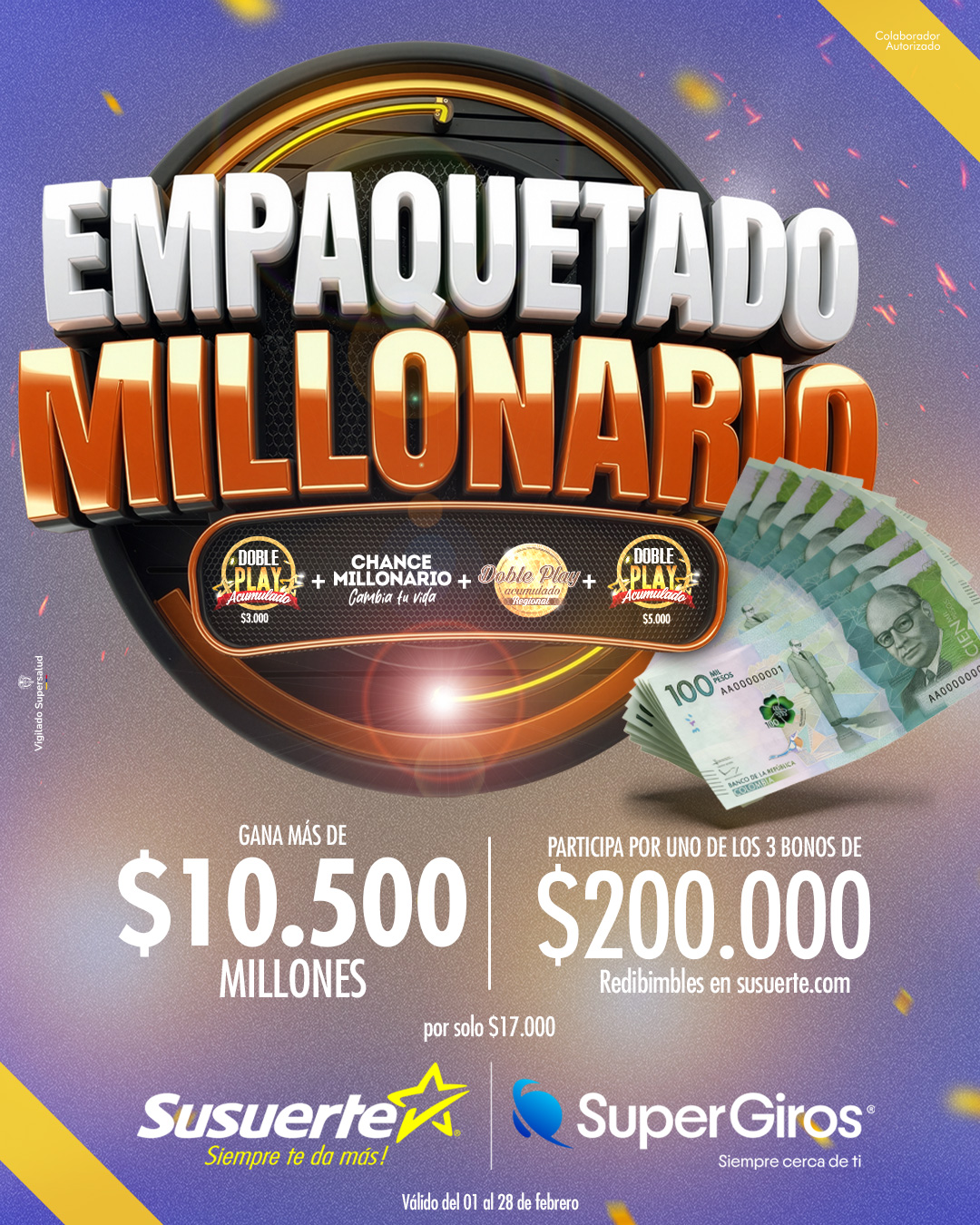 - Cada transacción registrada del “EMPAQUETADO MILLONARIO” equivale a una oportunidad adicional de ganar.