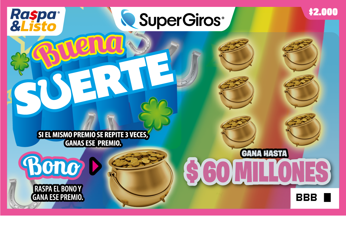 Raspa toda el área, si alguno de tus números coincide con el número ganador, ganas el premio de ese número