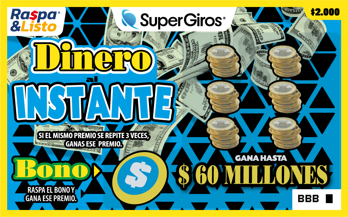 Raspa la zona de juego, si encuentras 3 cantidades iguales, ganas esa cantidad