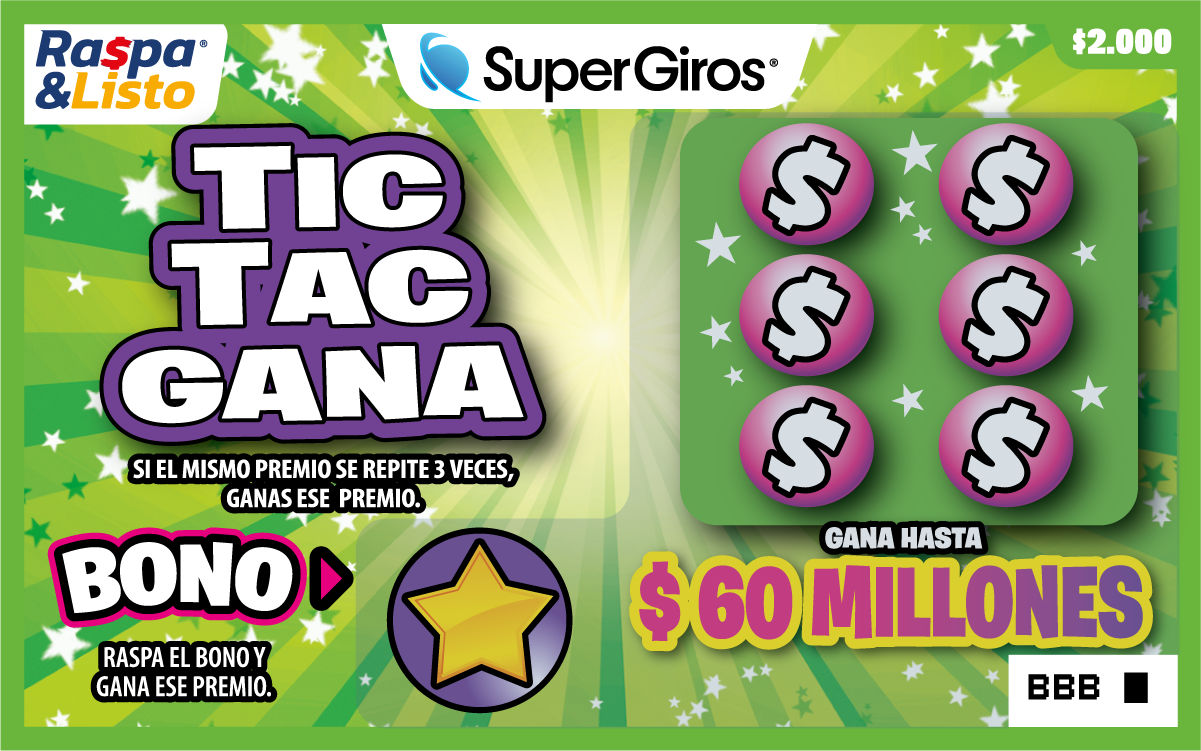 Raspa los juegos 1, 2 y 3. Si el mismo premio se repite 3 veces ganas el premio de ese juego