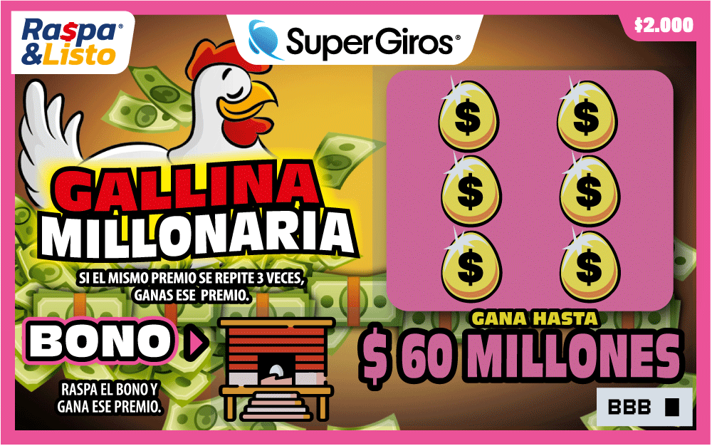 ¡Gana hasta 90 millones!Si el mismo premio se repite 3 veces, ganas ese premio. Incluye bono
